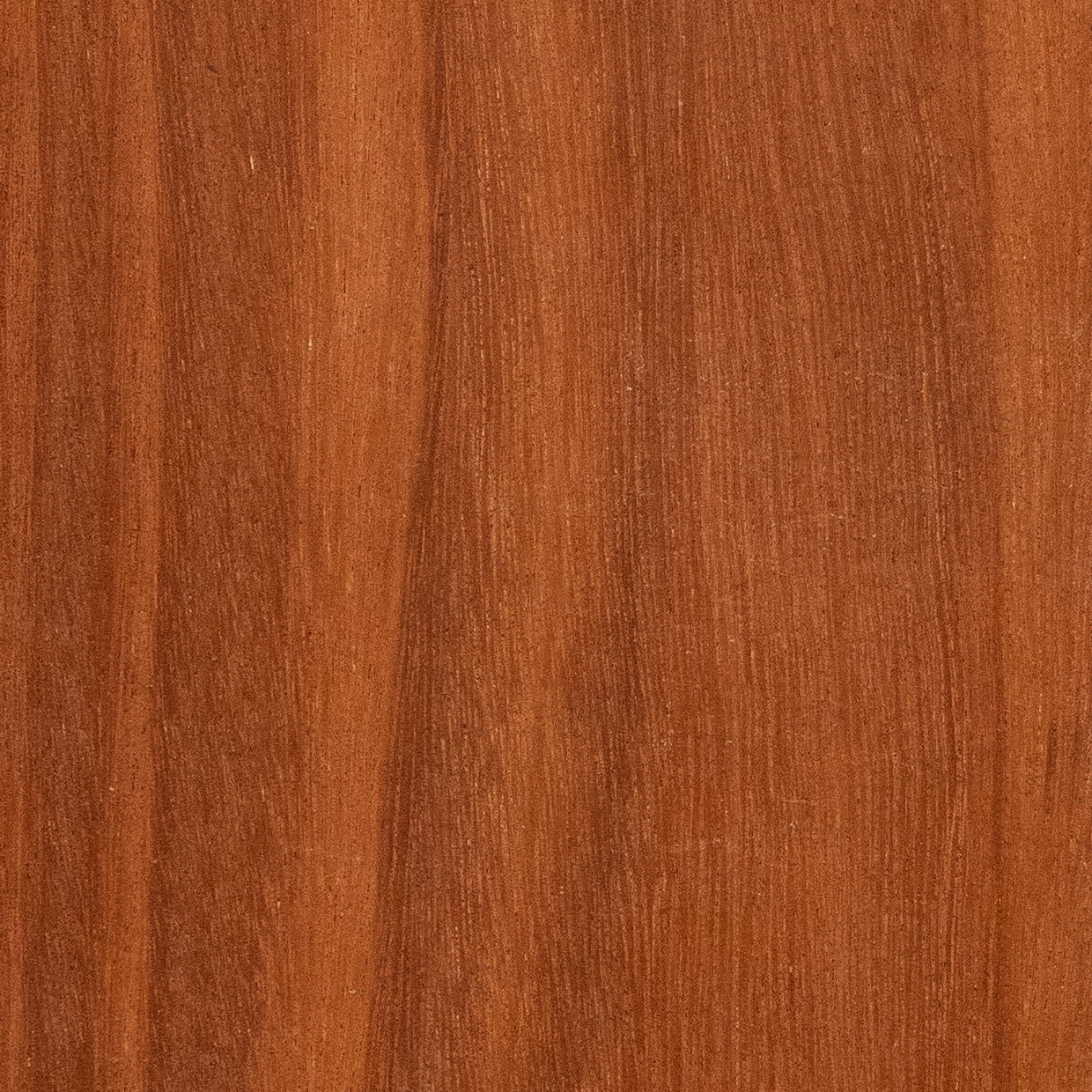 has a warm, coppery-red colour with a grain that shifts and shimmers as the light catches it. It's a pleasure to work with — cuts cleanly, finishes beautifully, and looks stunning in furniture and fitted joinery.